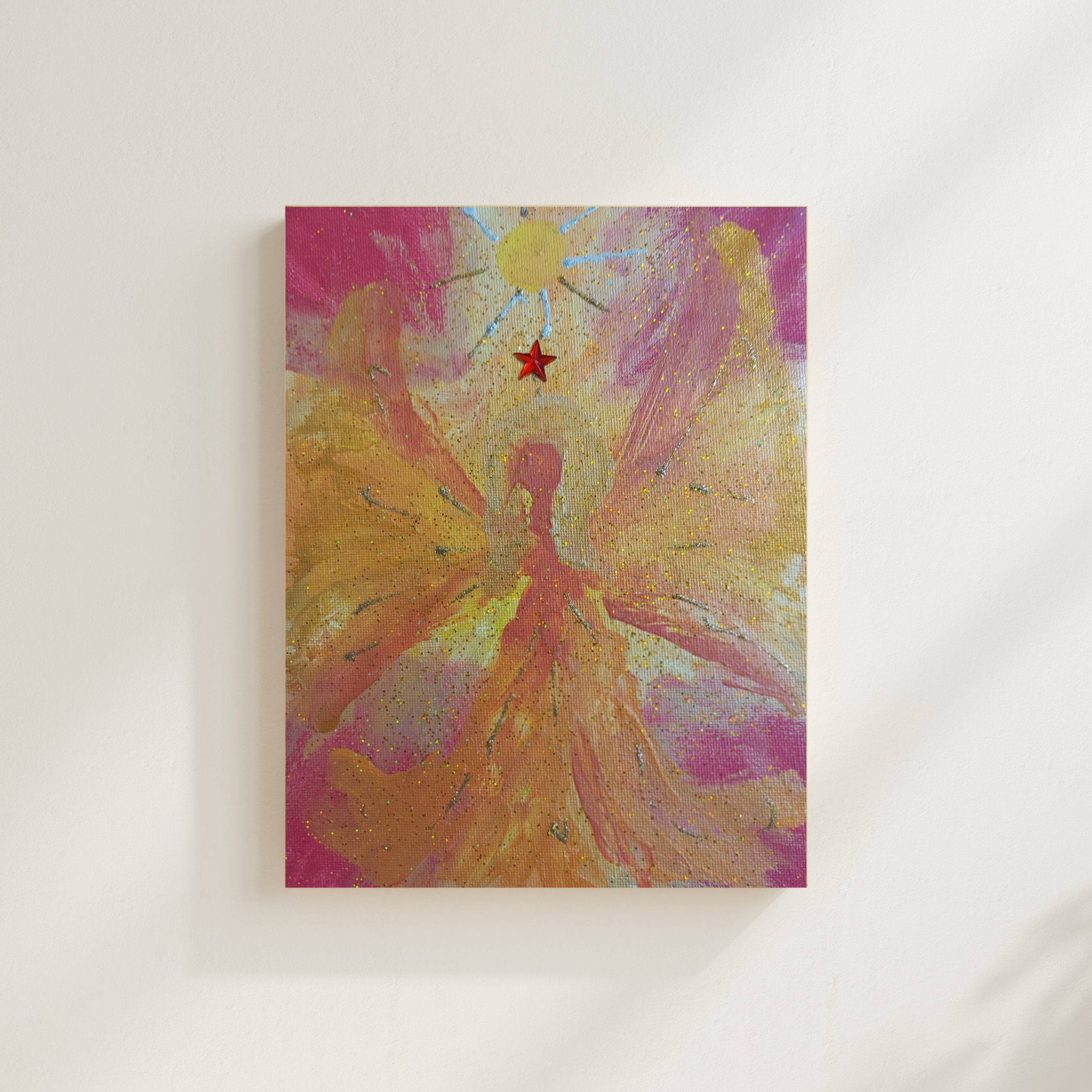 Hole dir mit diesem einzigartigen Kunstwerk einen Hauch von himmlischer Schönheit in dein Zuhause und lasse dich von der magischen Ausstrahlung des Sonnenengels verzaubern.