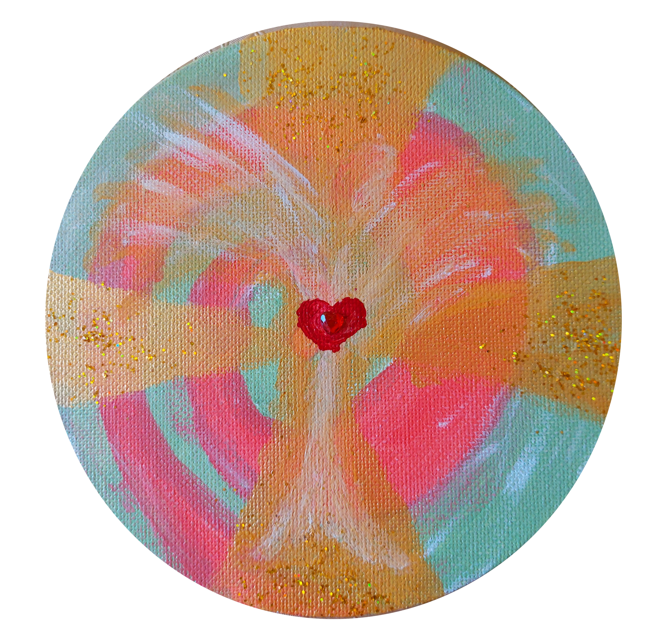 Das Original Engelbild „Aufgestiegene Meisterin Minerva“ ist ein handgemaltes Acrylbild auf Leinwand mit einem Durchmesser von 14,7 cm.
